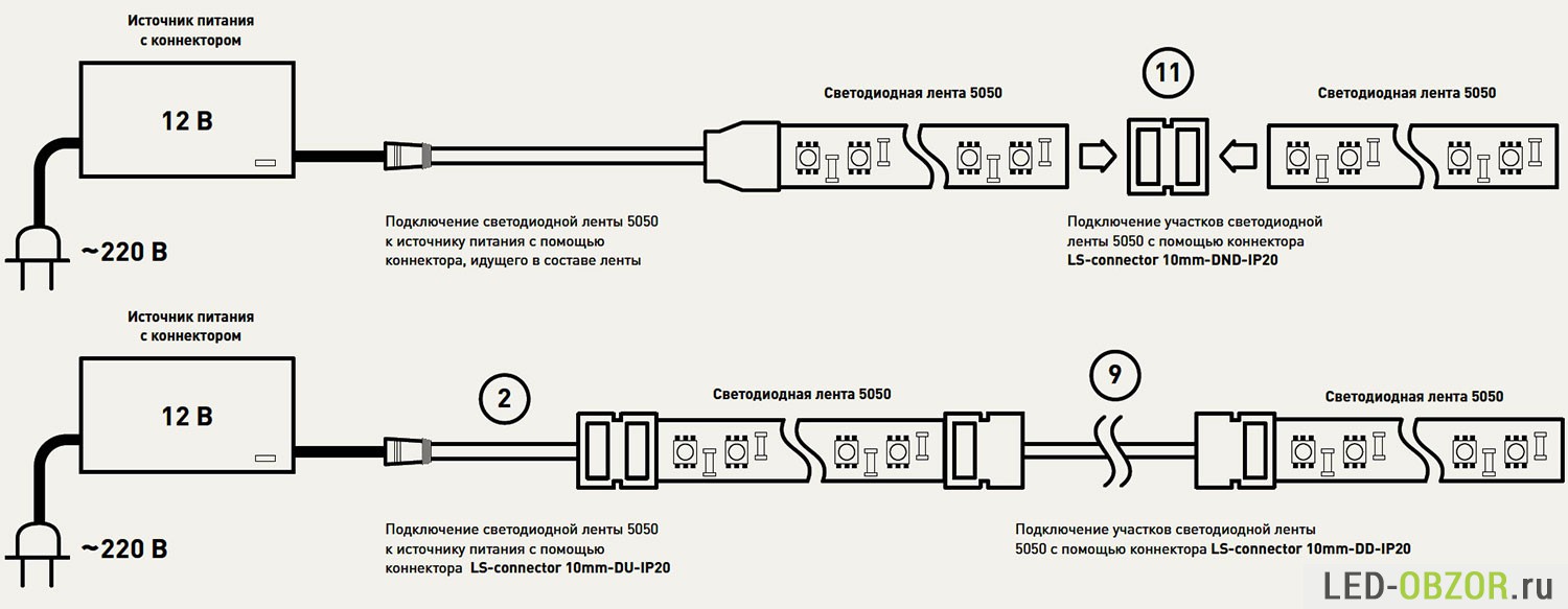 Вот несколько способов соединения светодиодных лент: