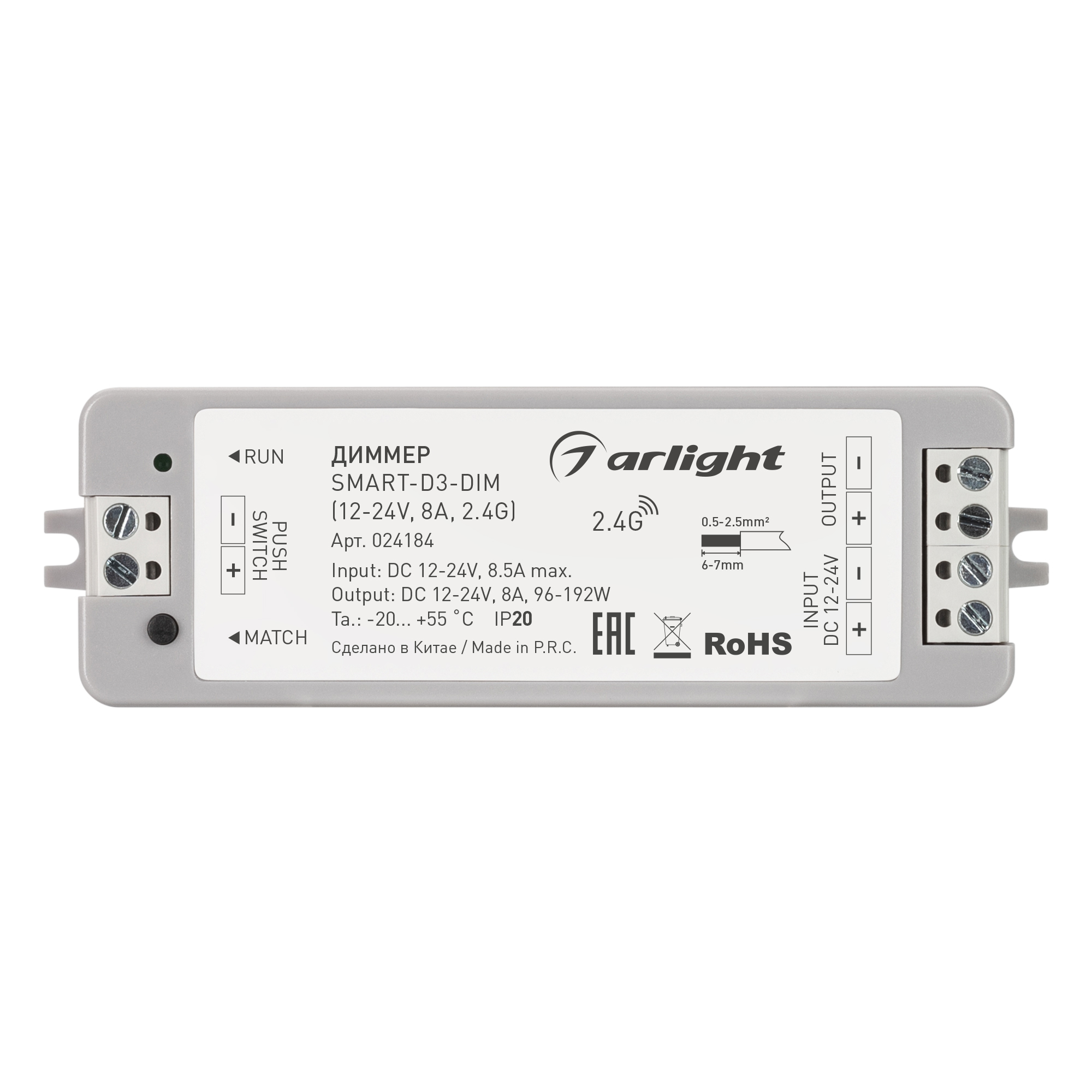 Диммер SMART-D3-DIM (12-24V, 8A, 2.4G) (Arlight, IP20 Пластик, 5 лет) 024184 в Иркутске