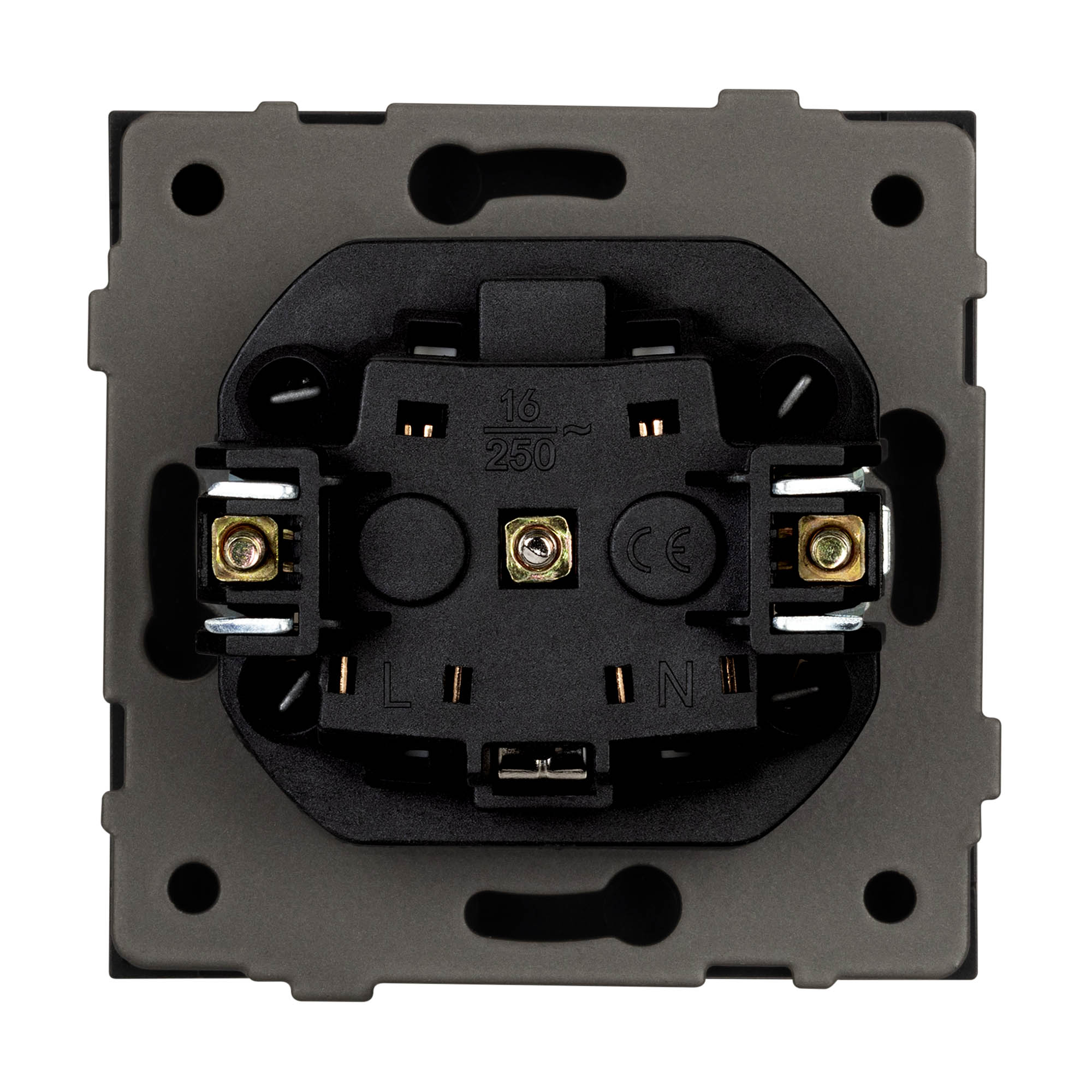 Механизм розетки с заземлением и влагозащитной крышкой на 1 пост. Цвет - серый. Без фронтальной рамки. Уровень пылевлагозащиты IP44. Розетка устанавливается в стандартный подрозетник круглого сечения диаметром 60мм.