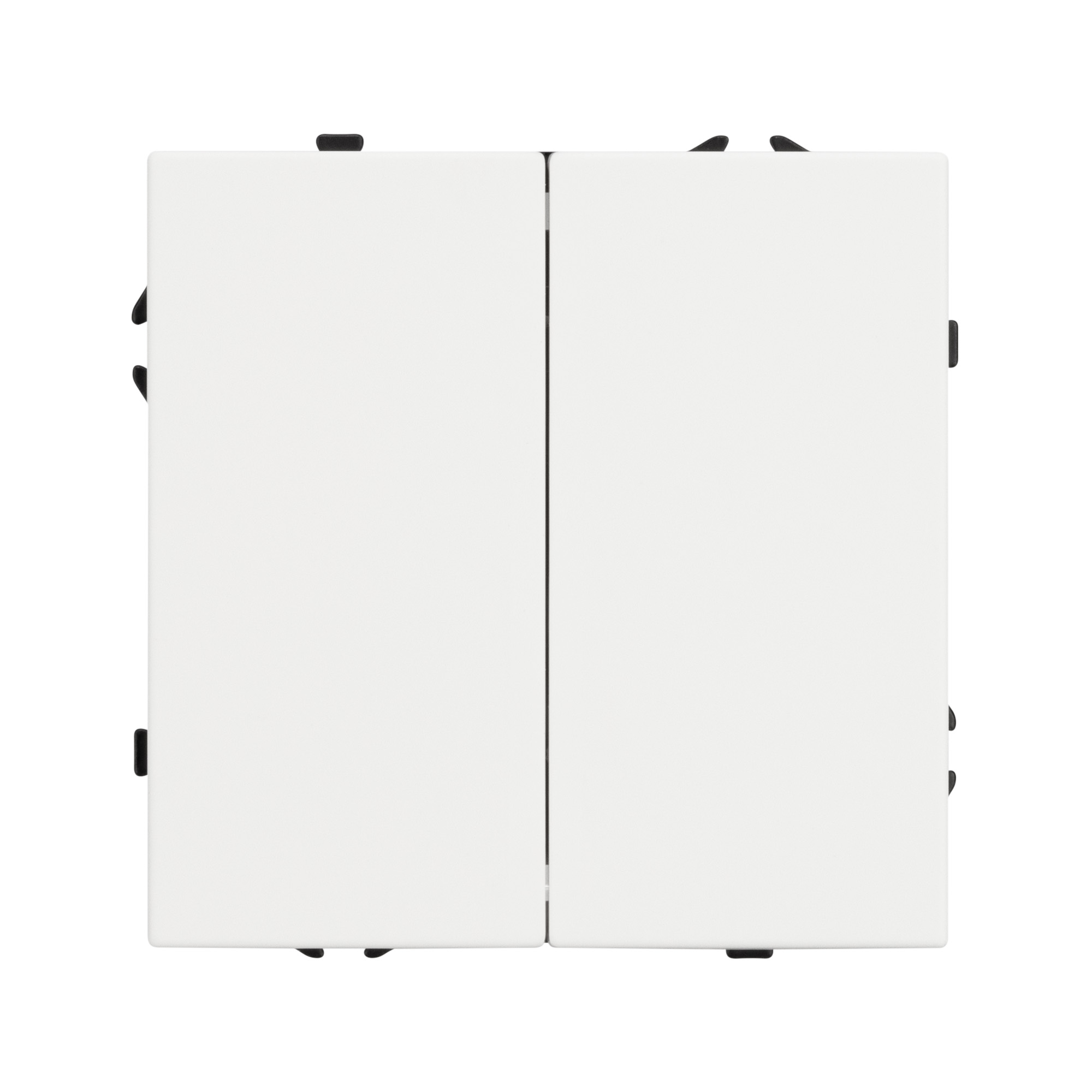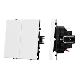 Механизм выключателя света клавишный на 1 пост 2 клавиши (проходной). Цвет - белый, с Soft-Touch покрытием. Без фронтальной рамки. Уровень пылевлагозащиты IP20. Выключатель устанавливается в стандартный круглый подрозетник круглого сечения диаметром 60мм.