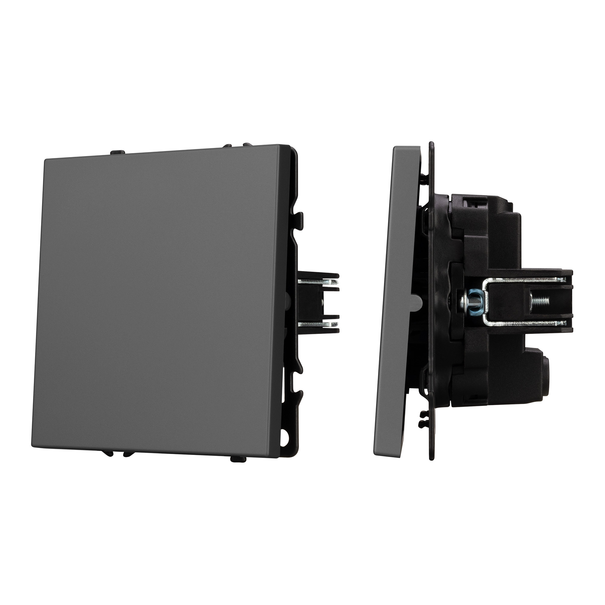 Строгие геометрические линии гармонично сочетаются с функциональностью продуманных механизмов, создавая идеальное решение для дизайн-проектов, где важны как эстетика, так и практичность. Механизм выключателя света совместим с рамками серии NOBE, создает утонченный минималистичный вид. Скрытый тип монтажа позволяет гармонично встроить в интерьер любого современного дизайн-проекта. Видимая часть механизма выполнена из высококачественного пластика серого цвета и имеет Soft-Touch покрытие, что придает изделию приятные тактильные ощущения и стильный внешний вид. Контактная часть присоединяется при помощи винтовых зажимов, позволяя быстро и легко подсоединить механизм выключателя к питающим элементам. А усиленные распорные лапки двойного захвата надежно фиксируют механизм в установочном подрозетнике круглого сечения диаметром 60мм. Суппорт окрашен в черный матовый цвет под основу механизма и выполнен из металла толщиной 1,5мм, что обеспечивает безопасность и уверенность в установке. На каждой стороне суппорта размещены фиксирующие элементы, позволяющие комбинировать механизмы в системы до 5 шт как горизонтально, так и вертикально.