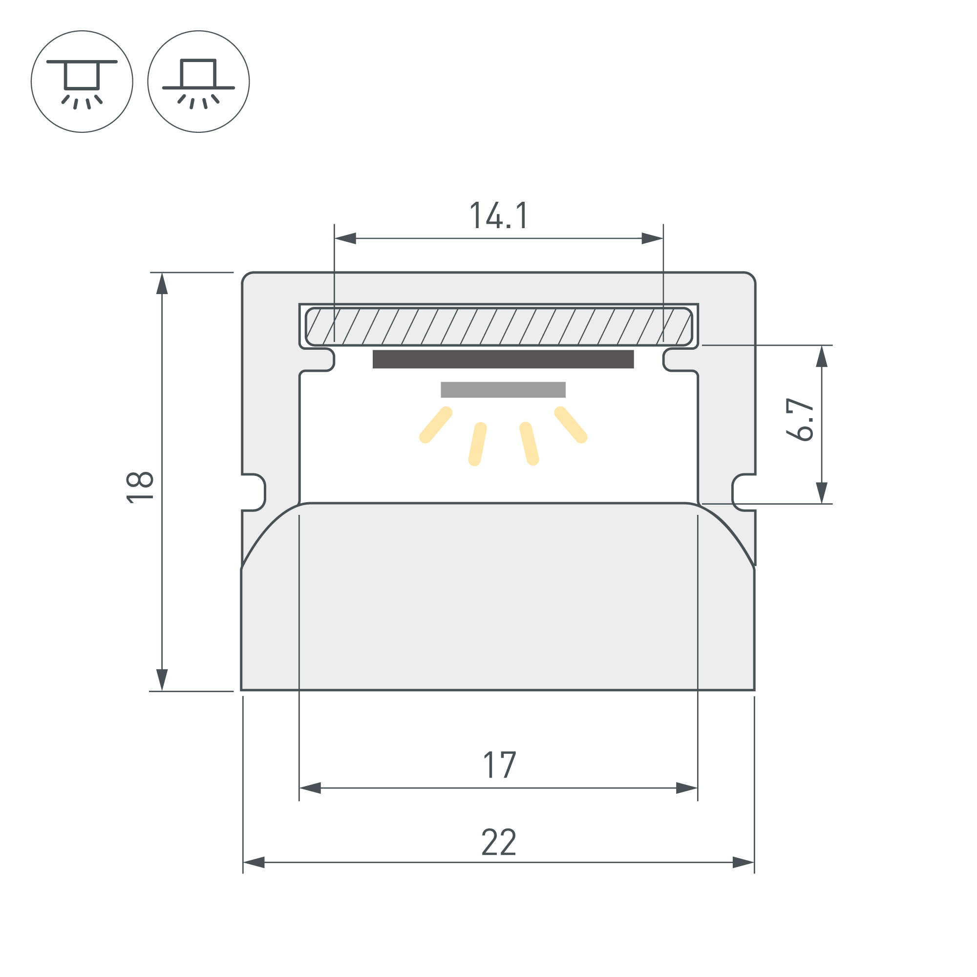 Цельнолитой профиль из поликарбоната со встроенным матовым экраном повышенной прочности. Габаритные размеры профиля составляют 2000 мм в длину, 22 мм в ширину и 18 мм в высоту. Идущая в комплекте полоса для установки светодиодных лент из анодированного алюминия позволяет использовать ленту шириной до 14 мм, высотой до 6,7 мм и мощностью до 10 Вт/м. Для установки во влажных помещениях необходима герметизация при помощи двухкомпонентного эпоксидного герметика. Класс пылевлагозащиты – IP65 (при соблюдении технологии герметизации). Для установки в пол требуется профиль-держатель, который заказывается отдельно. Этот продукт представляет отличное решение для создания современных световых проектов и обеспечивает надежную и стильную основу для установки светодиодов.