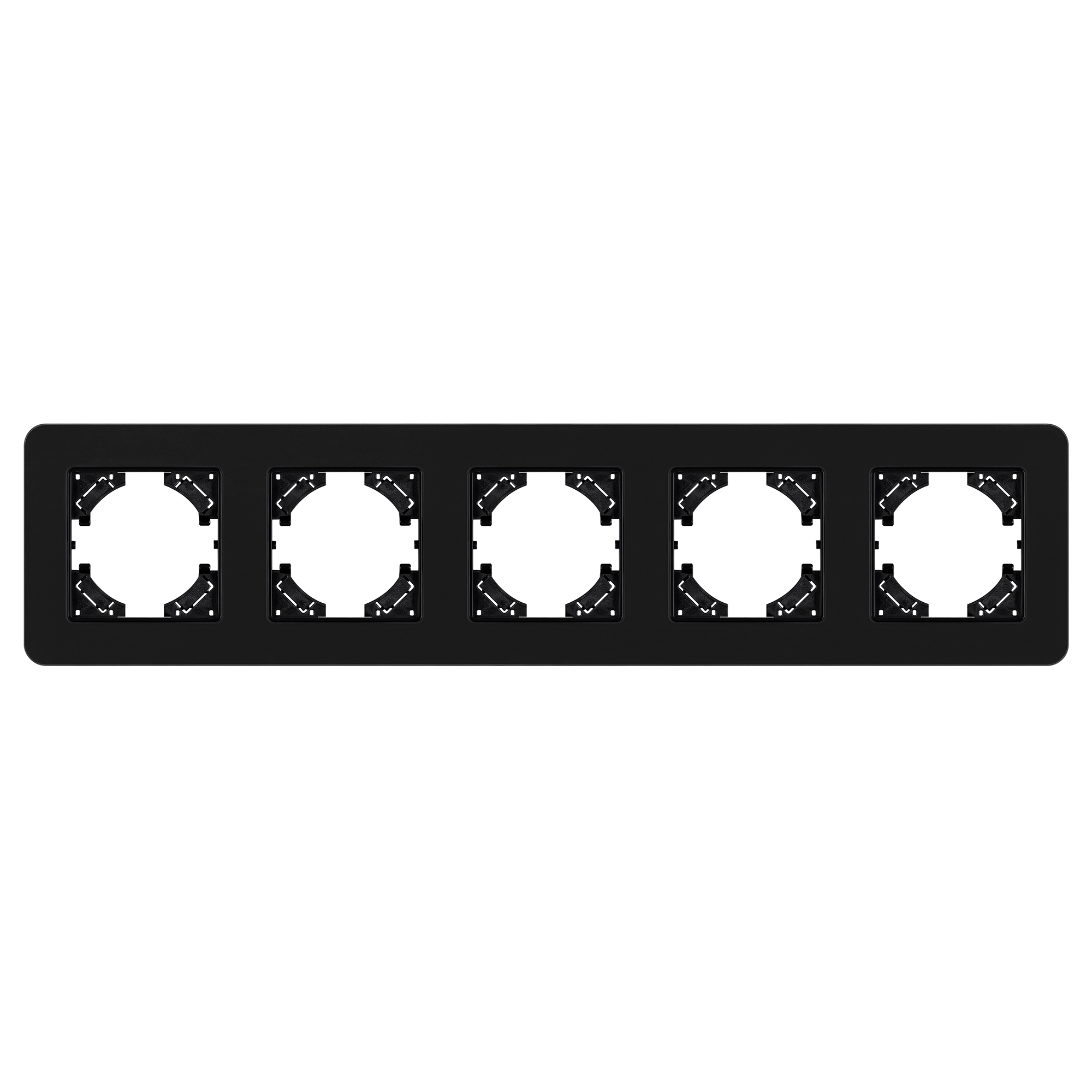 Рамка стеклянная на 5 постов, под встраиваемый механизм. Цвет - черный с Soft-Touch покрытием. Среднего уровня герметичности IP20. Ориентация монтажа - горизонтальная (основным ориентиром служат посадочные выступы для накладки механизма).