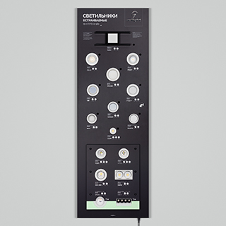 На стенде демонстрируются даунлайты разных размеров.