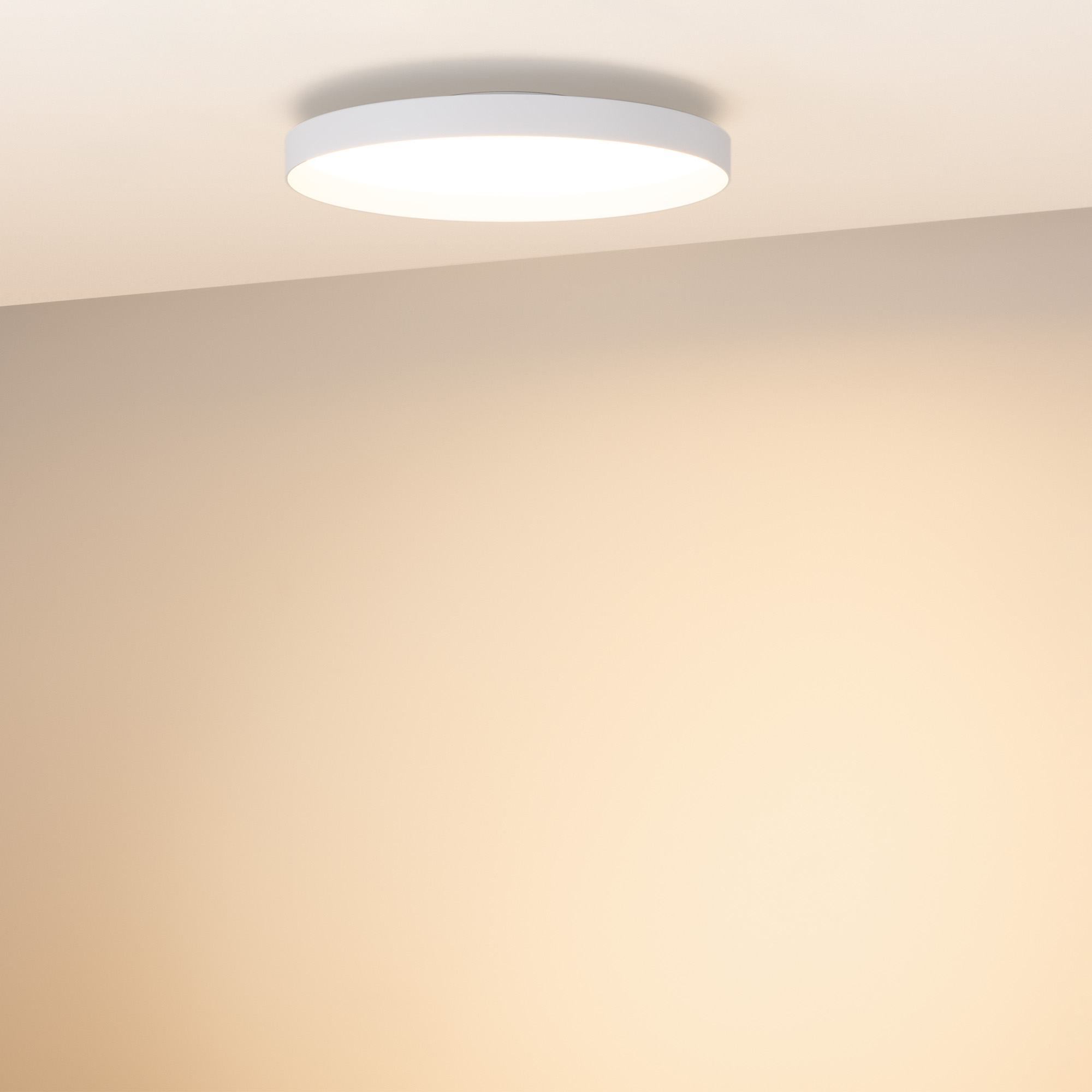 Светодиодный накладной светильник с изменяемой цветовой температурой. Мощность 40 Вт, св. поток 3018-3305 лм, 80-85 лм/Вт, теплый 2700 K, теплый 3300 K, дневной 4000K (переключается), CRI>92, угол 80°, напряжение питания 230 В. Белый круглый корпус из алюминия, матовый призматический экран PC, степень защиты IP20. Размер: Ø 450х70 мм. Размер световой части: Ø 450х39 мм, размер основания: Ø 196х31мм. Монтаж накладной. Драйвер 9-38 В, 1050 мА, пульсация <0,3%. Диммирование TRIAC.
